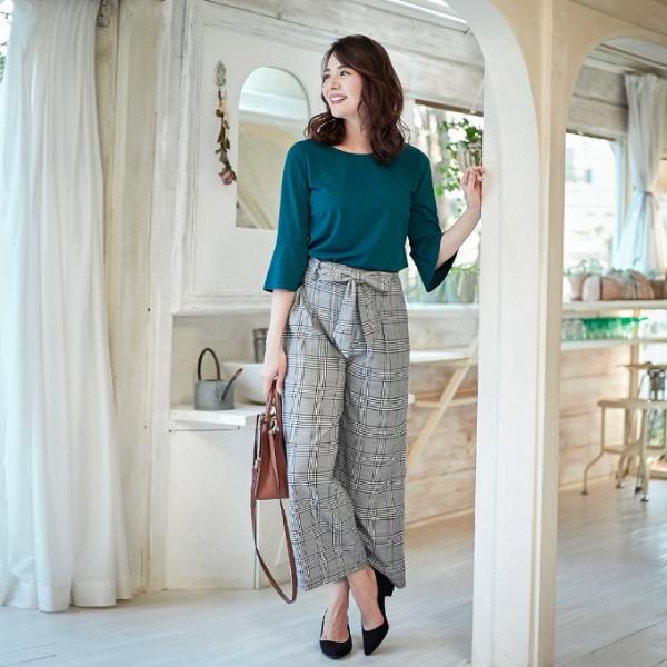 ガウチョパンツ 秋冬 レディース 無地 体系カバー コーデ 通勤 グレンチェック 01bl4379 1 Rioty リオティ 通販 Yahoo ショッピング