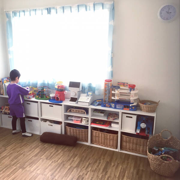 インテリアに馴染む 子どもが片付けやすい 無印 イケア Diy おもちゃ収納アイディア キナリノ 無印良品の家 インテリア パイン材ユニットシェルフ
